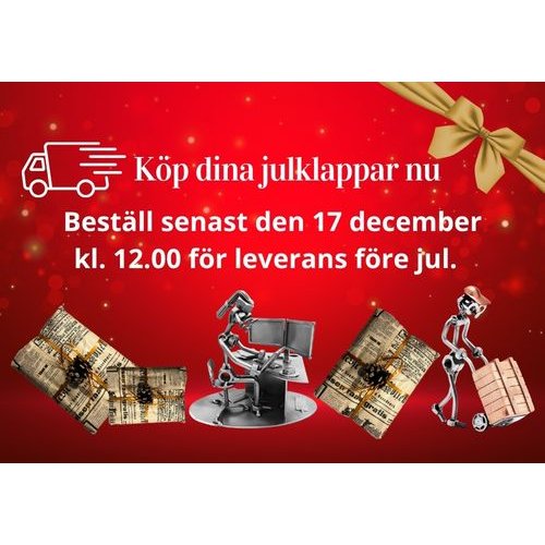 Beställ senast den 17 december om du vill att ditt paket ska komma fram före jul 2025. Så om du vill vara säker på att dina julklappar kommer fram före jul ska du beställa i god tid. Kom ihåg att här på Design och Handelshuset är returrätten på metallfigurer 90 dagar.